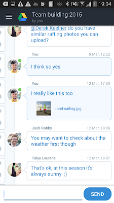 Filechat is a new, free service that allows you to collaborate on documents, photos and videos in Dropbox or Google Drive. Instead of just commenting on a document or file, users can chat, like and vote on any of their files in Drive or Dropbox. You can even have multiple conversations with different teams or groups. It adds more "social" features to collaborate with others in a tailored caht room that is based in a file or folder.